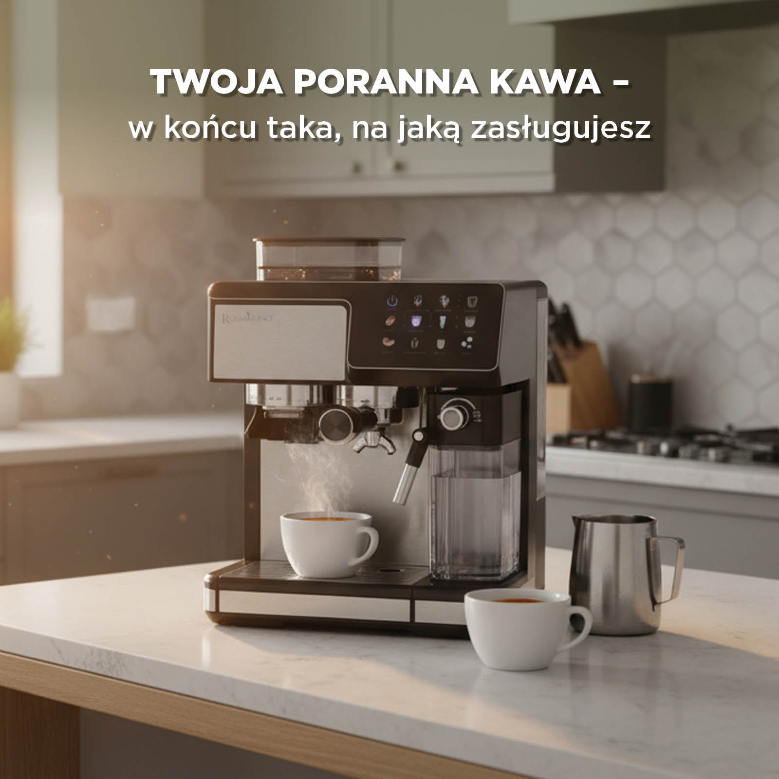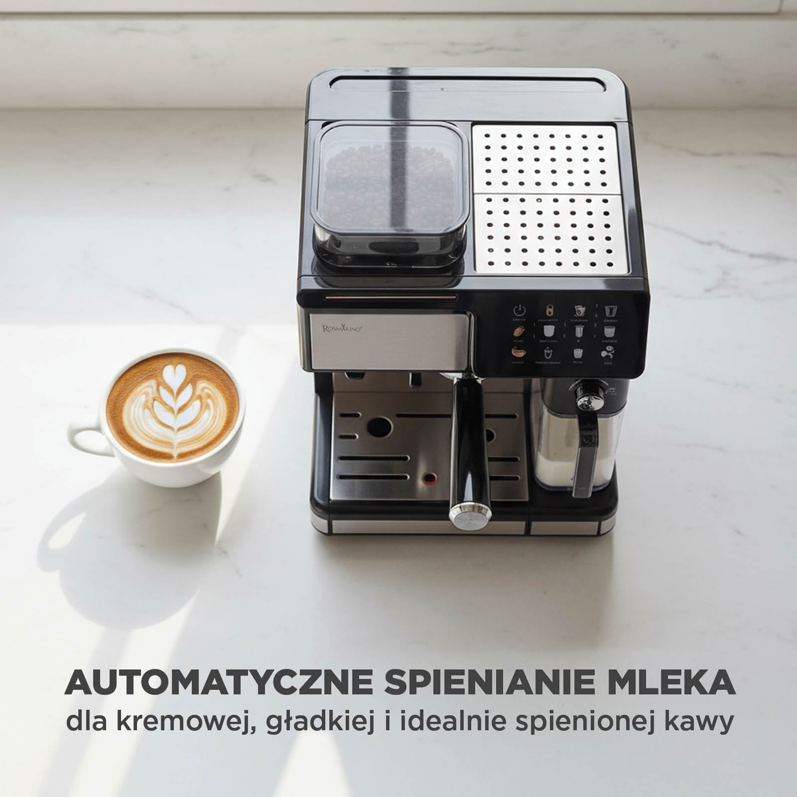 Rosmarino Barista tworzy ten moment, gdy poranek zamienia się w spokój. W dwie minuty wita Cię kawa, która pachnie jak z kawiarni, ale jest przygotowana dokładnie tak, jak lubisz – bez kolejek, bez słów, tylko jednym dotknięciem przycisku.