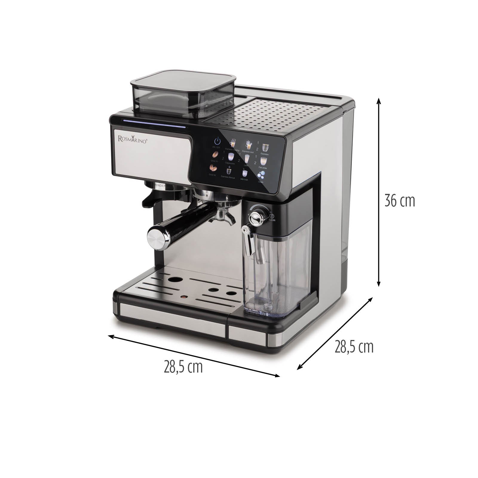 Rosmarino Barista pozwala rozpocząć każdy dzień nieco inaczej. Espresso na szybki poranek, cappuccino na chwilę przyjemności, latte macchiato na spokojne popołudnie lub orzeźwiająca kawa mrożona na letnie dni. Wybierz napój, który pasuje do Twojego nastroju, i ciesz się uczuciem, jakbyś miał własną kawiarnię w domu.