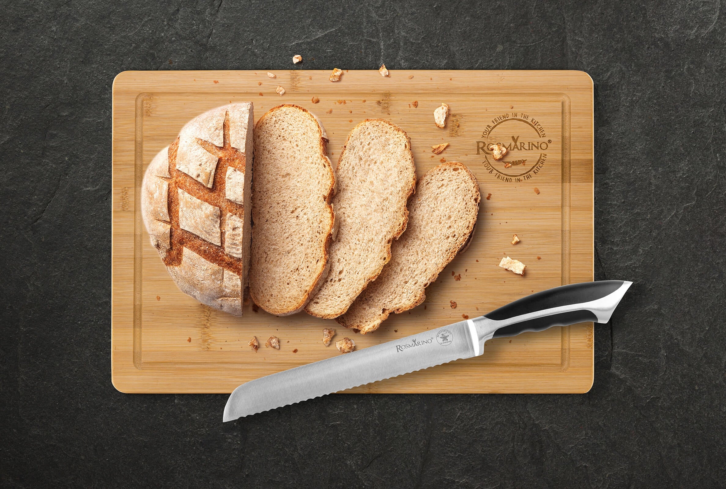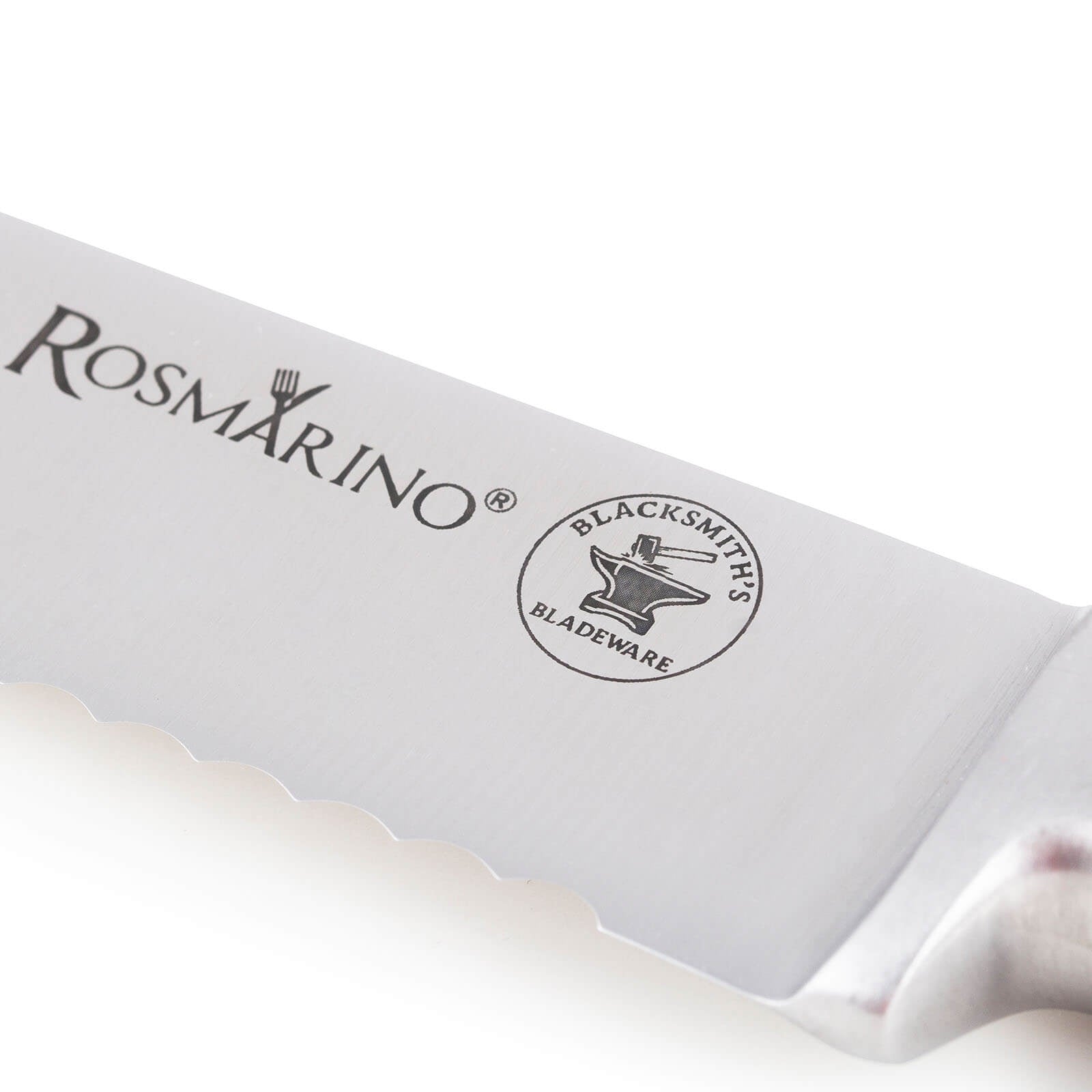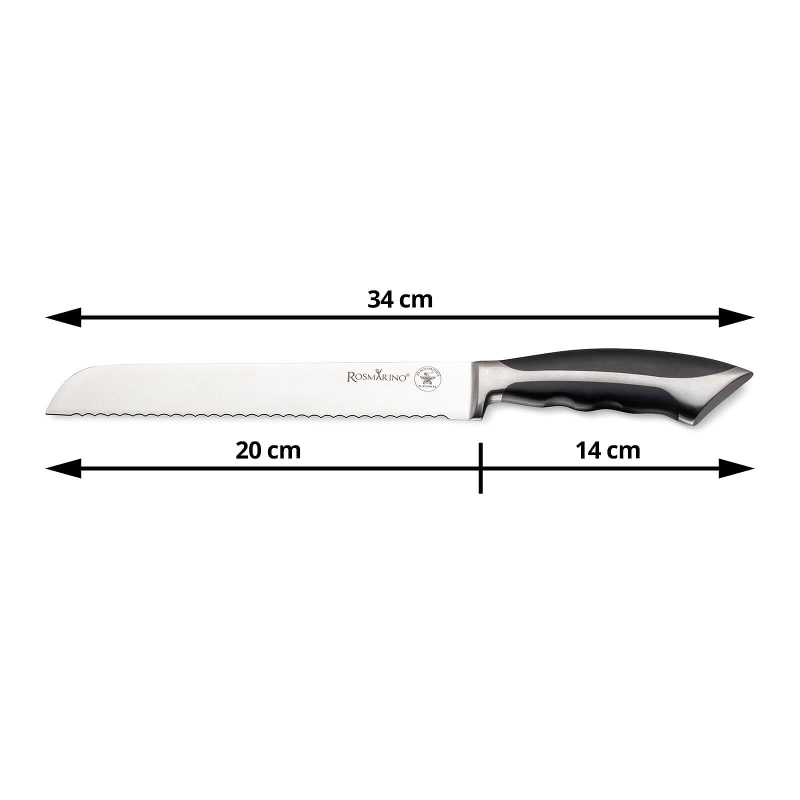 Doskonały nóż kuchenny Rosmarino Blacksmith's dla wszystkich mistrzów kuchni i początkujących! Nóż dzięki swojemu kształtowi i ostremu ząbkowanemu ostrzu jest idealny do krojenia chleba. Ostrze wykonane jest z nierdzewnej stali wysokiej jakości pochodzenia niemieckiego, a wytrzymała rękojeść z wysokiej jakości tworzywa ABS pozwala na maksymalne obciążenia. Profesjonalna ostrość pomoże Państwu uzyskać równe i precyzyjne kromki chleba. Zalety noża to obustronnie ręcznie ostrzone ostrze pod kątem 15° zapewniające długotrwałą ostrość i wytrzymałość. Nóż łatwo wyczyścić pod bieżącą wodą z odrobiną detergentu.