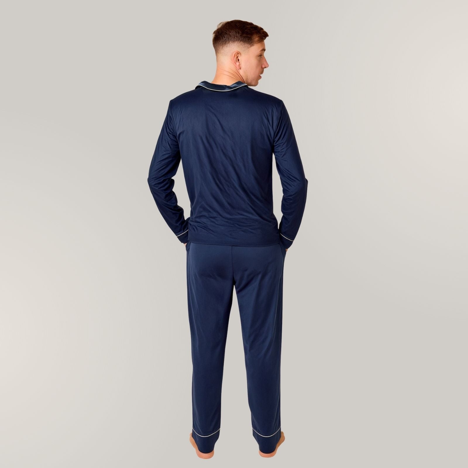 Piżama męska Greyson łączy wybitne rzemiosło, minimalistyczny styl i precyzyjne krawiectwo.