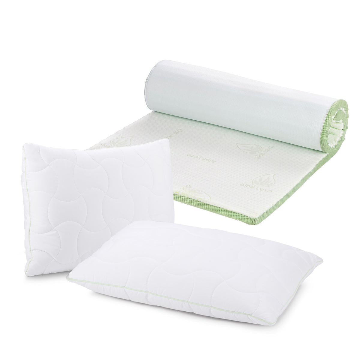 - Najlepsza kombinacja do snu: topper na materac i 2 poduszki z dodatkiem aloesu dla spokojnego snu.