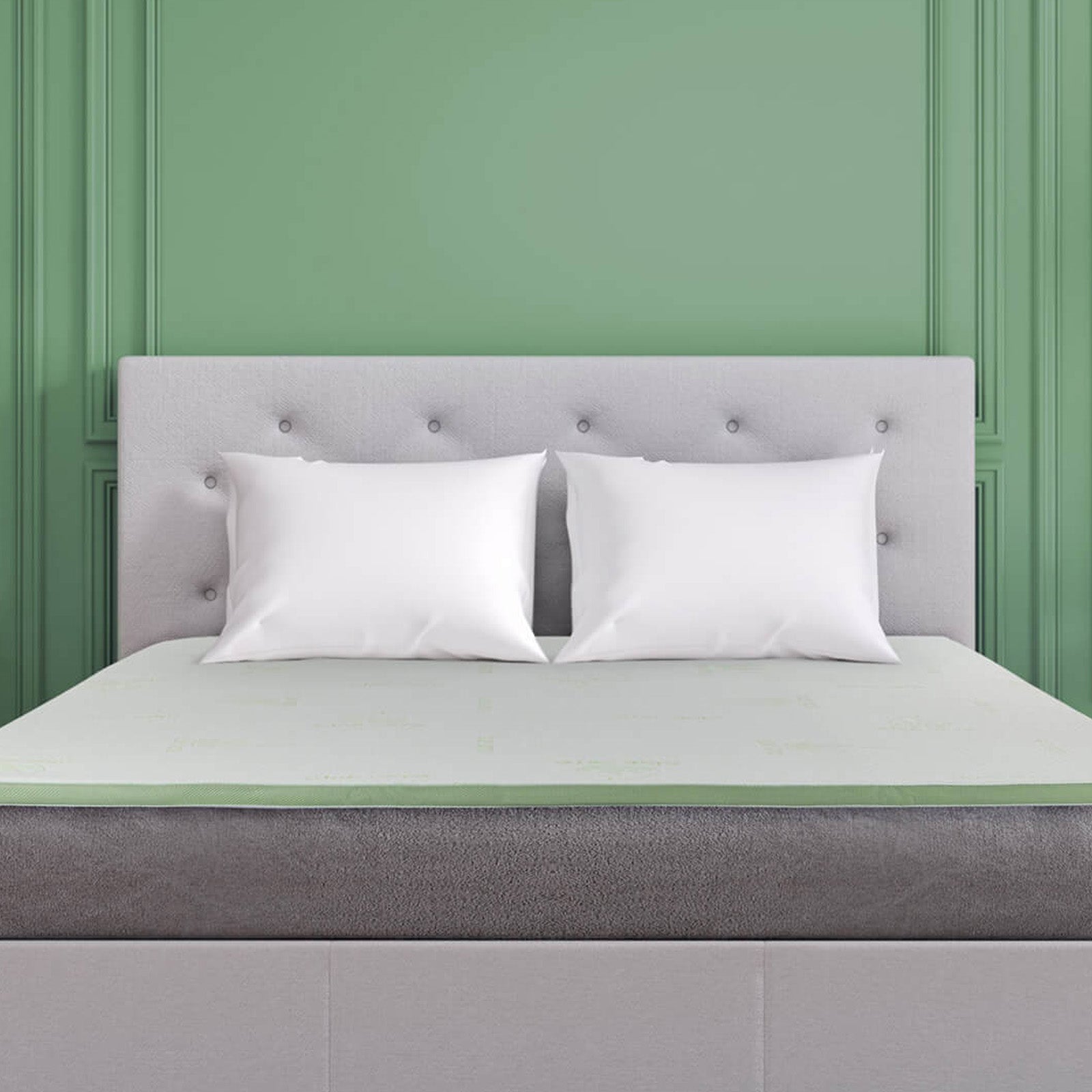 - Idealny zestaw do komfortowego snu: topper na materac i 2 poduszki.