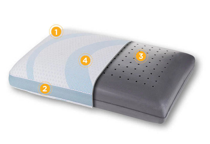 Nasza poduszka premium wyróżnia się specjalnym składem, który reguluje temperaturę podczas snu. Unikalna osłona z efektem chłodzącym oraz węgiel aktywowany w piance memory pochłaniają nadmiar ciepła i odprowadzają je z dala od ciała. Specjalna oddychająca siateczka 3D umożliwia optymalny przepływ powietrza. Rezultatem jest świeże środowisko do spania, zapewniające regenerujący sen każdej nocy.